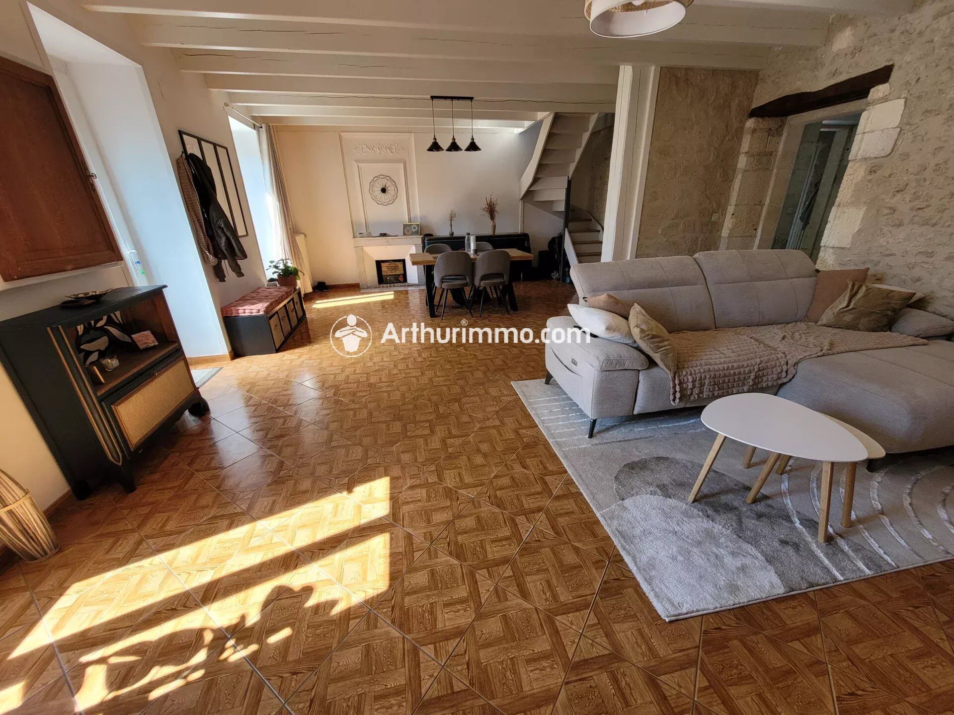 On pose ses valises dans cette jolie charentaise de 110 m² très lumineuse. Composée de 5 pièces, elle dispose de trois chambres et wc à l'étage.
