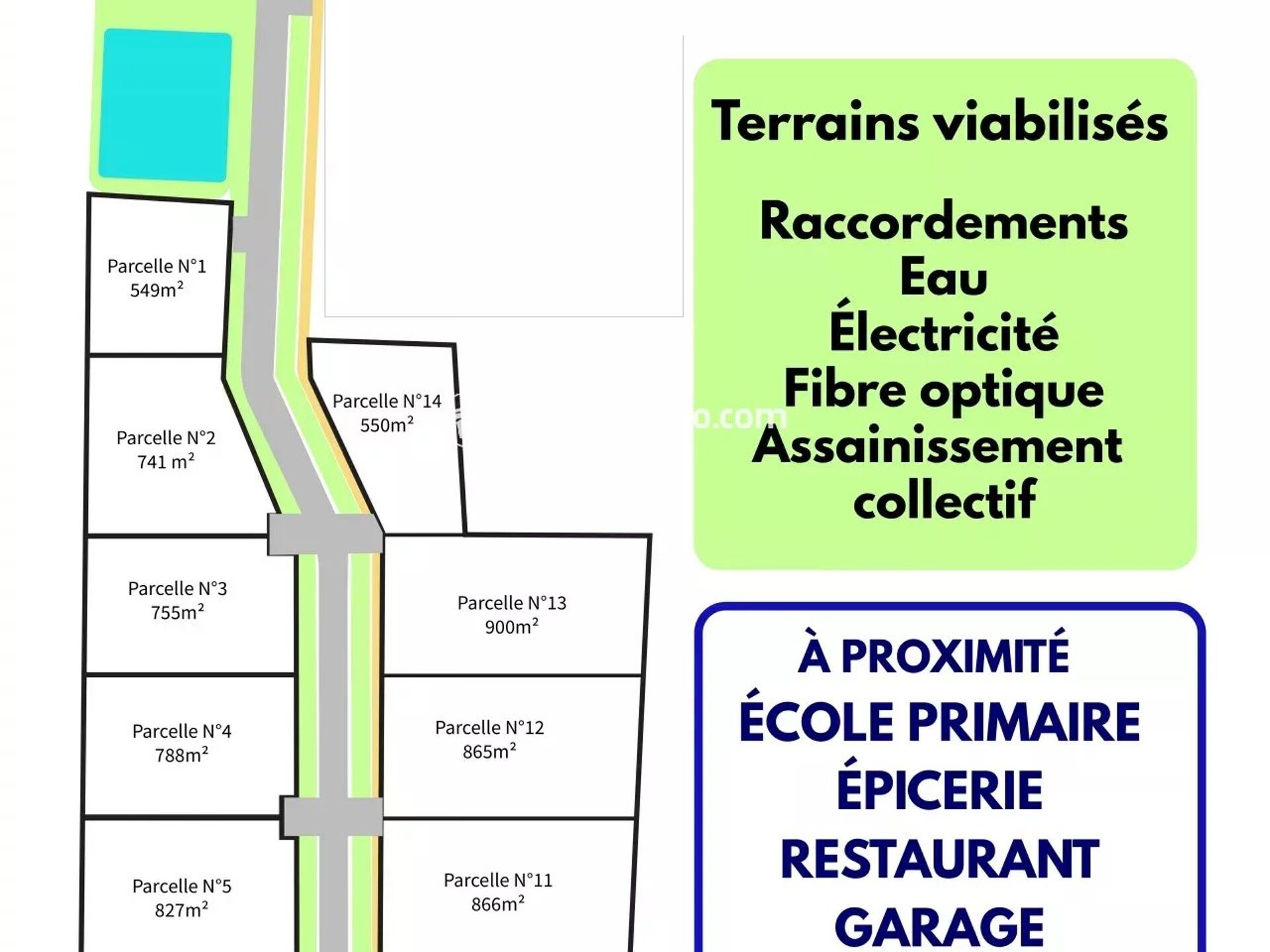 Une parcelle de 549 m² viabilisée et bornée - eau, électricité, assainissement collectif, fibre optique - lotissement de 14 parcelles - de 549 à 965 m² - en libre choix constructeur.
