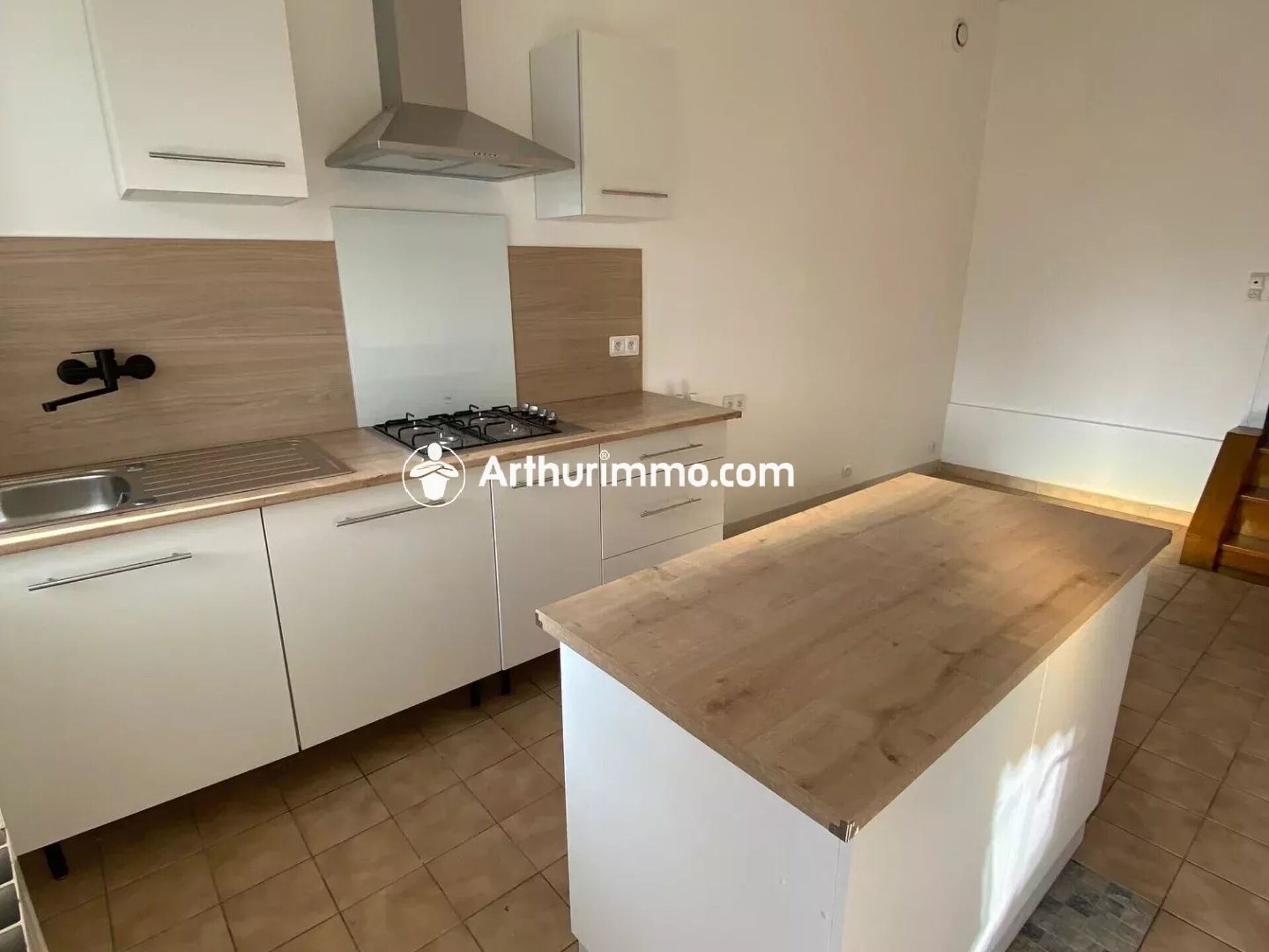 Maison comprenant au Rez-de-chaussée: entrée avec placard, cuisine aménagée et équipée (plaque cuisson+hotte), un séjour. A l'étage: Palier, salle d'eau avec wc, 3 chambres dont une communiquante.