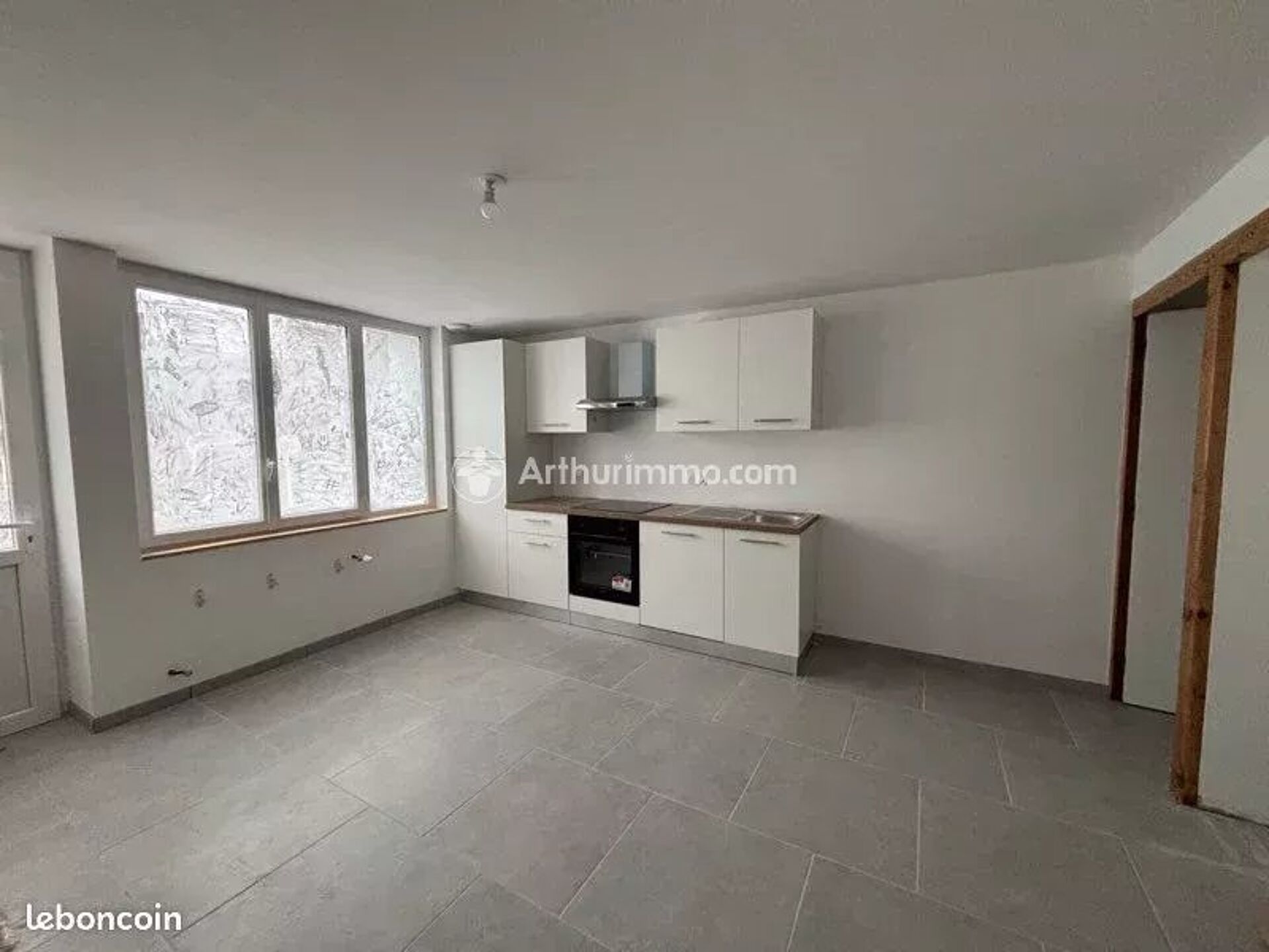 Maison de ville entièrement rénovée comprenant au rez-de-chaussée : une cuisine équipée (four, hotte, plaque) et aménagée, un salon, un cellier donnant accès à une courette de 16 m², une buanderie ainsi qu'un WC.